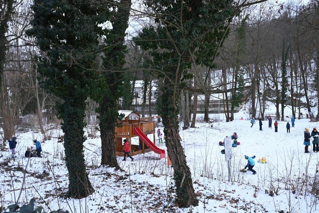 Stávající herní prvek pro malé děti (domeček) na tom není fyzicky úplně dobře, ale co půjde, opravíme a případně vyměníme. Počítáme ale i s novými prvky pro malé děti – pískovištěm, pavučinou a herními solitéry z přírodních materiálů.
